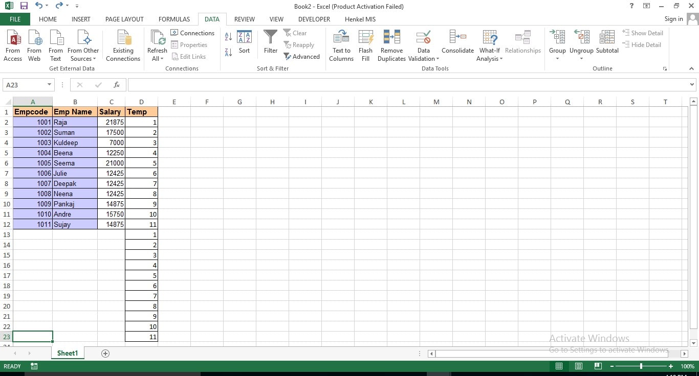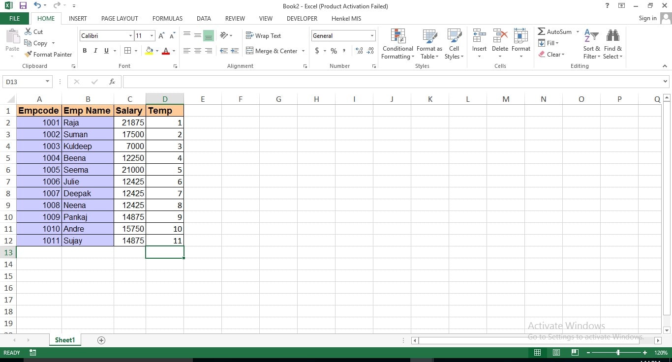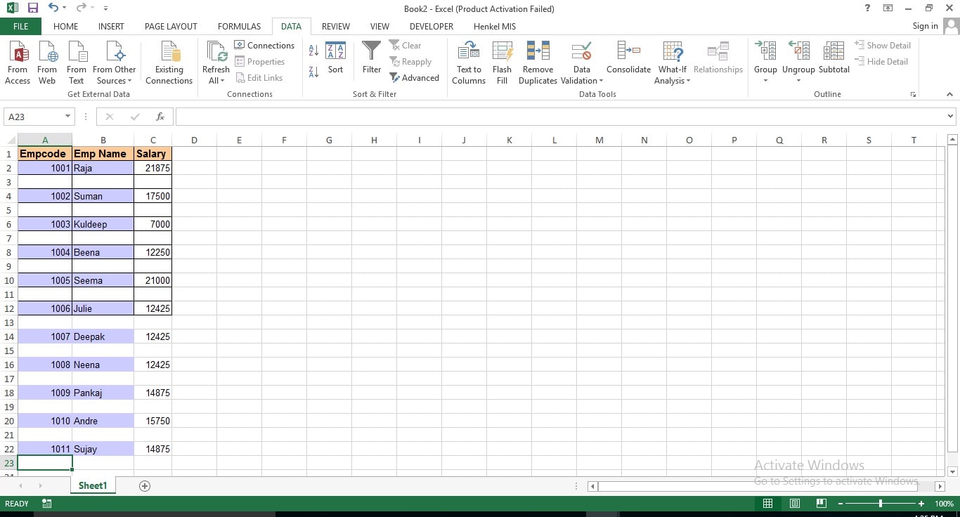 - Then delete the unwanted column, i.e. last column(Temp). Refer to the following pic where data is having alternative blank rows.
